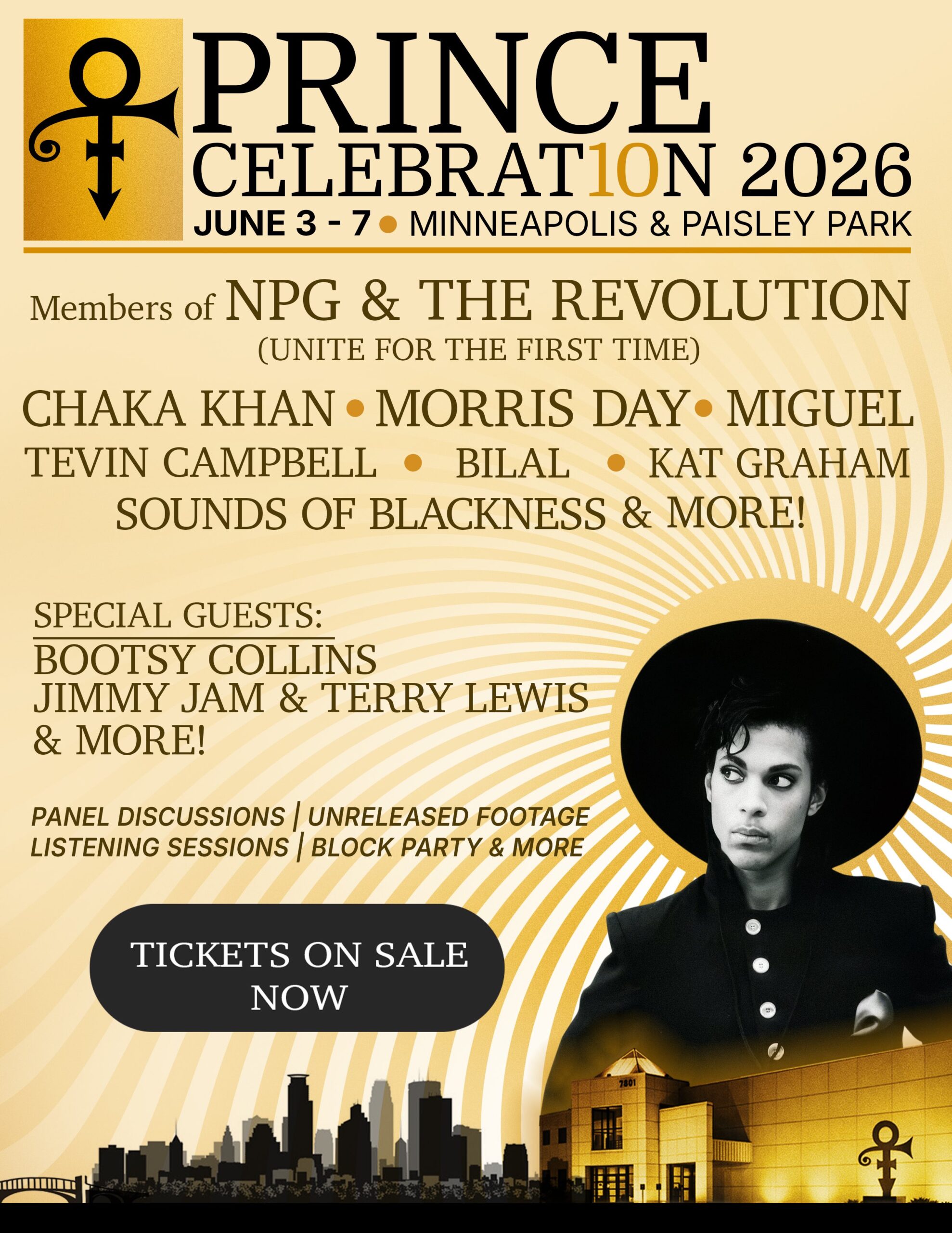 2026年6月、プリンスが旅立ってから10年という大きな節目を迎えるにあたり、聖地ペイズリー・パークにて「Celebration 2026」の開催が発表されました。 開催期間は2026年6月3日(水) ...