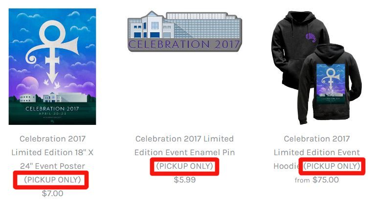 ↓のCelebration 2017 Limited Edition Event Enamel Pinの様に4月開催のセレブレーション2017限定商品には(PICKUP ONLY)と書いてあります。