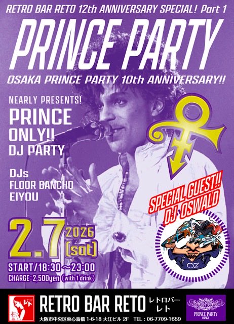 会場となるレトロ・バー レト12周年&大阪プリパ10周年を記念し、2026年2月7日にプリンス・パーティが開催されます。